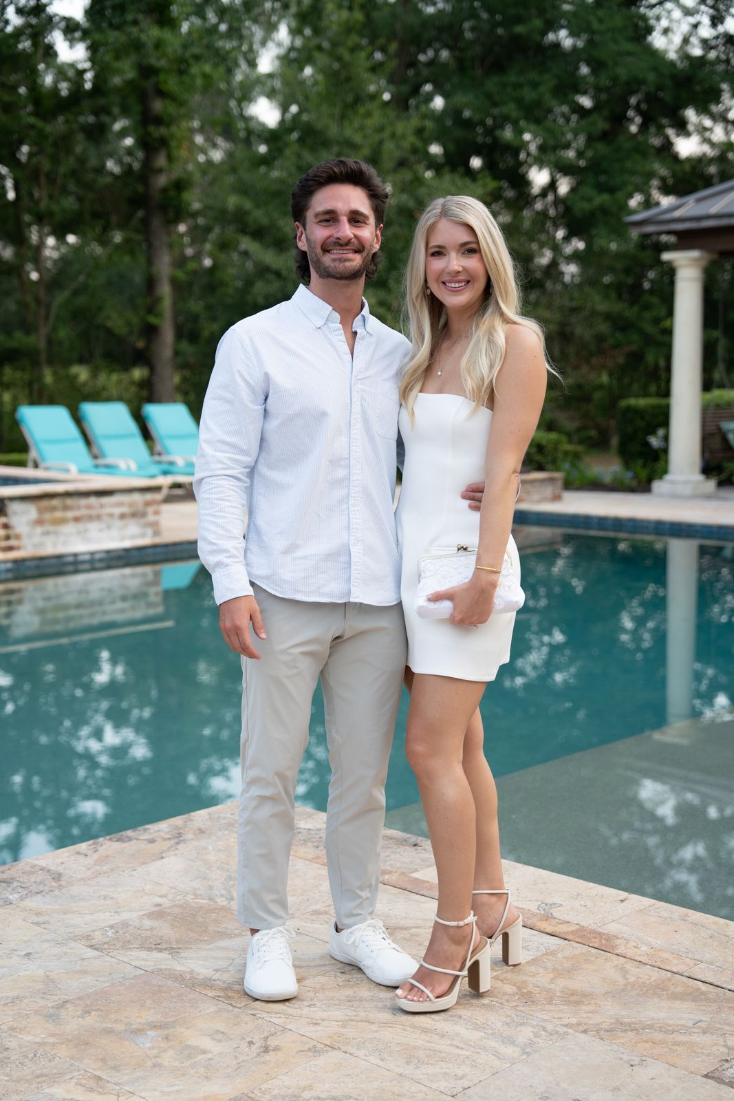 Model wearing Solene Strapless Pocket Mini Dress in White, front view.